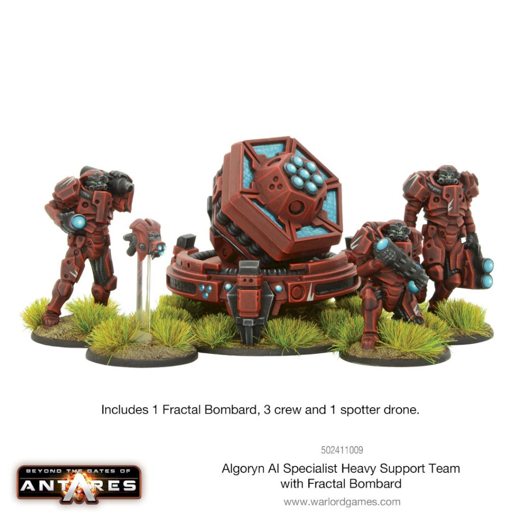 Fractal bombards are designed to destroy fortresses, buildings and other large static constructions from long range. They are essentially siege weapons that are designed to break apart immobile targets, and any enemy defending them. They are a specialised but essential weapon in the armouries of the Algoryn Prosperate as they are in all advanced forces of Antarean space.