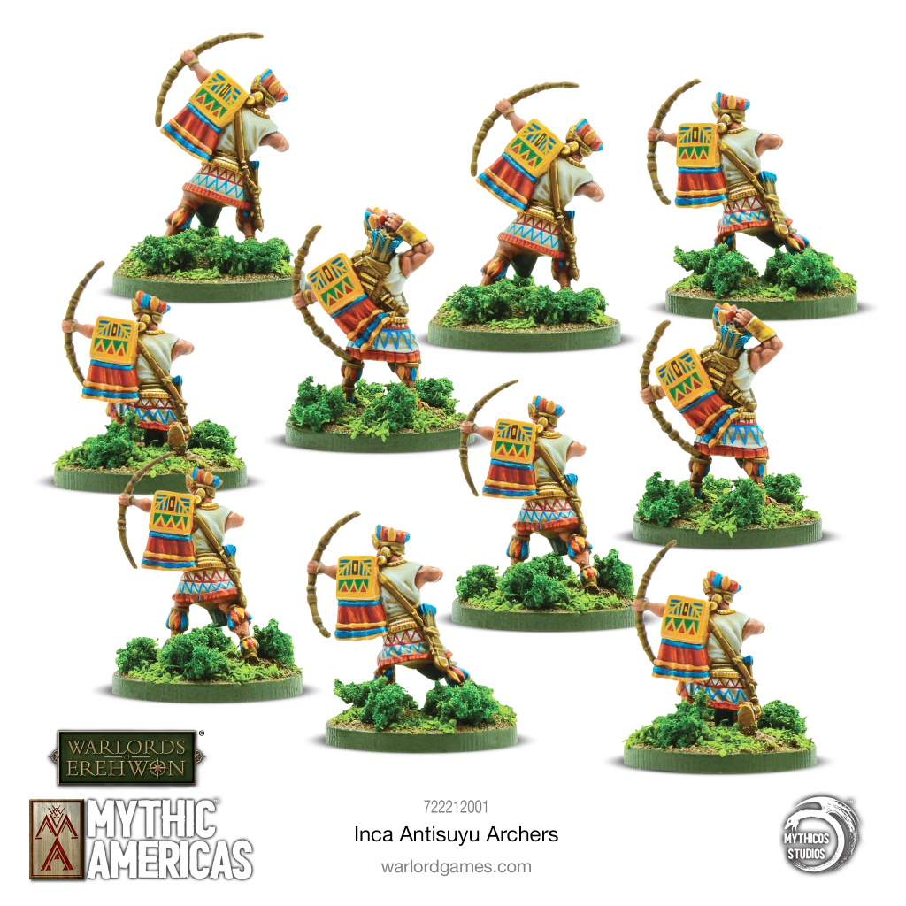 Antisuyu Archers are an integral part of an Inca warband, providing ranged support to Cuzco warriors. Armed with daggers and shield, these warriors can stand their ground in melee, but their true expertise lies with their bow. Deadly accurate to start, their lethality is often increased by the enchantments of Inca mystics to terrifying effect.