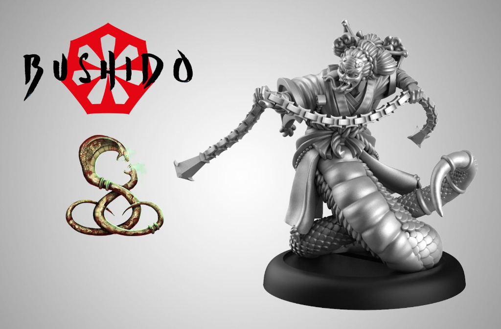 Azami is a great model to send against the enemies finest warriors as she negates their parry. Even the bravest Samurai may fail a test against her Fear (6) with the Terror trait. This allows her to reliably grapple enemies, inflicting severe penalties in melee while a second model comes to finish the enemy off. She also has Lightfooted and Jump Up, ensuring she can always get to her target. Azami is an ideal addition to the Ito Starter Box and fits the Serpents Coil theme as a combat model.