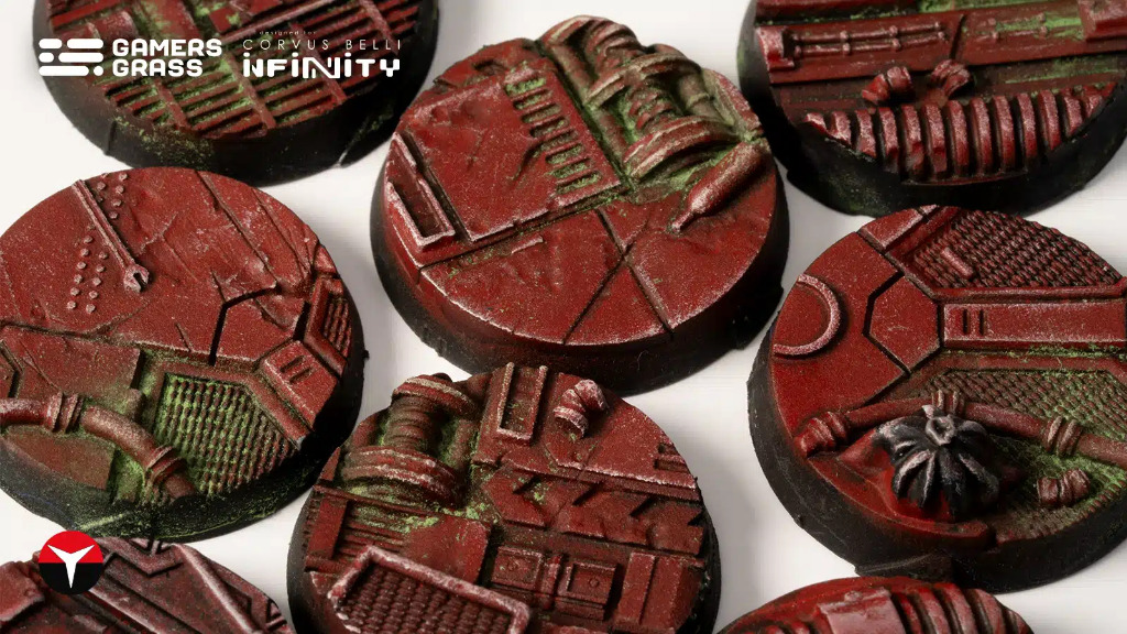 Featuring Line of Fire (LoF) marks, the bases are designed for “Infinity” by Corvus Belli.