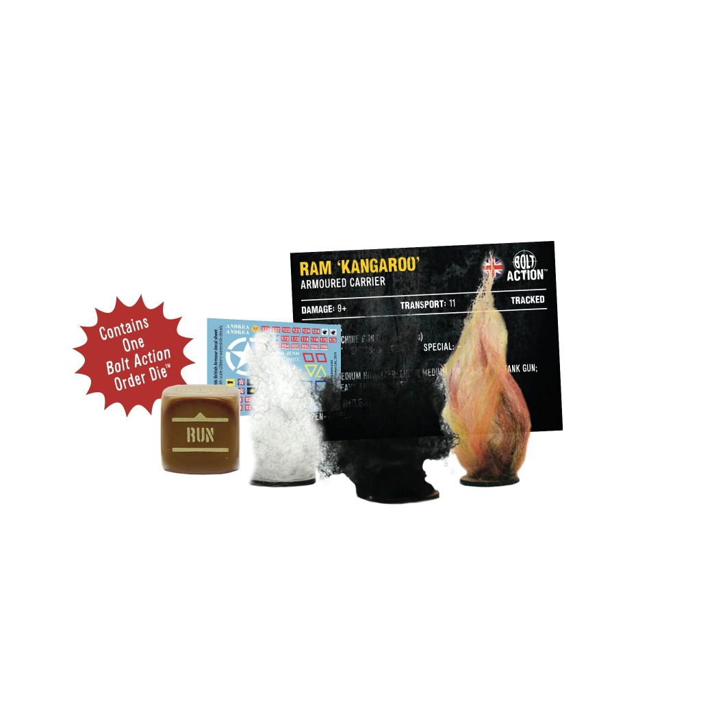 Contains one Kangaroo APC, cast in resin & metal, with waterslide decal sheet, Bolt Action Order Die, Bolt Action: Third Edition vehicle stat card, and vehicle damage markers.