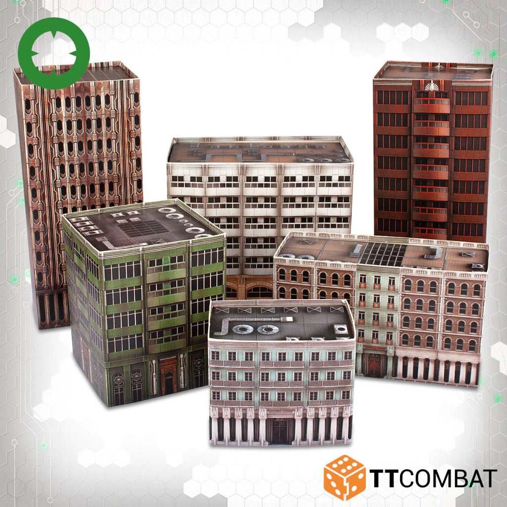 The Cityscape is designed for games of Dropzone Commander, but these excellent card buildings and gaming tiles will work perfectly for other 10mm games.