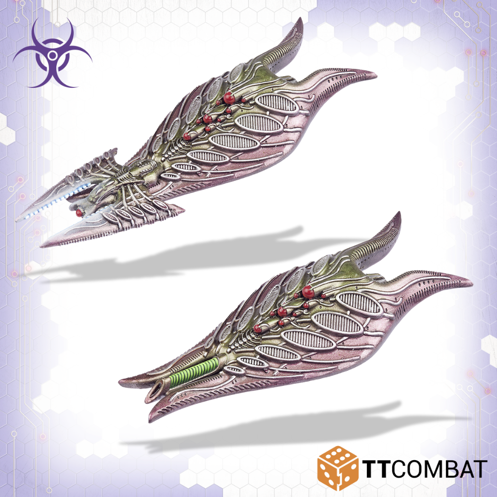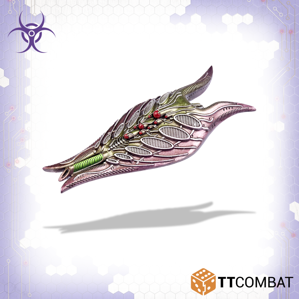 Corsair Interceptors are feared throughout the UCM, and with good reason! With an insane +5 Evasion, everything hits these little ships on 6s! Although incredibly fast and less easy to control than the hardier Reaver Gunship, the Corsair is no less deadly. A Plasma Cannon is a solid choice, especially for taking down ground vehicles. But you could trade that for an Arc Caster which – with its AA-3 rule – makes an incredible interceptor.