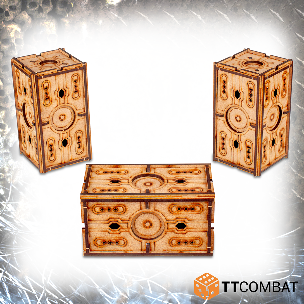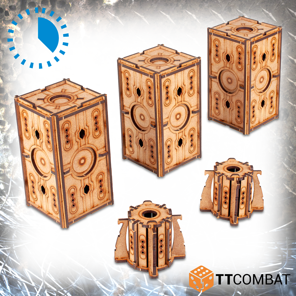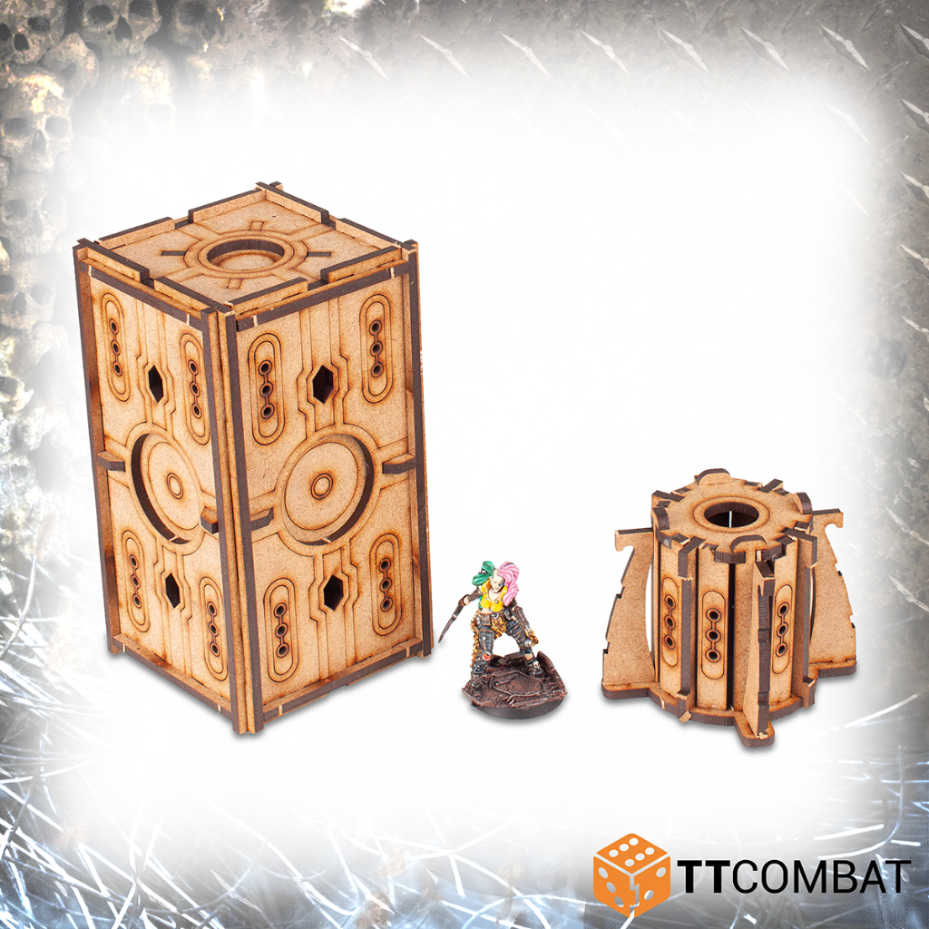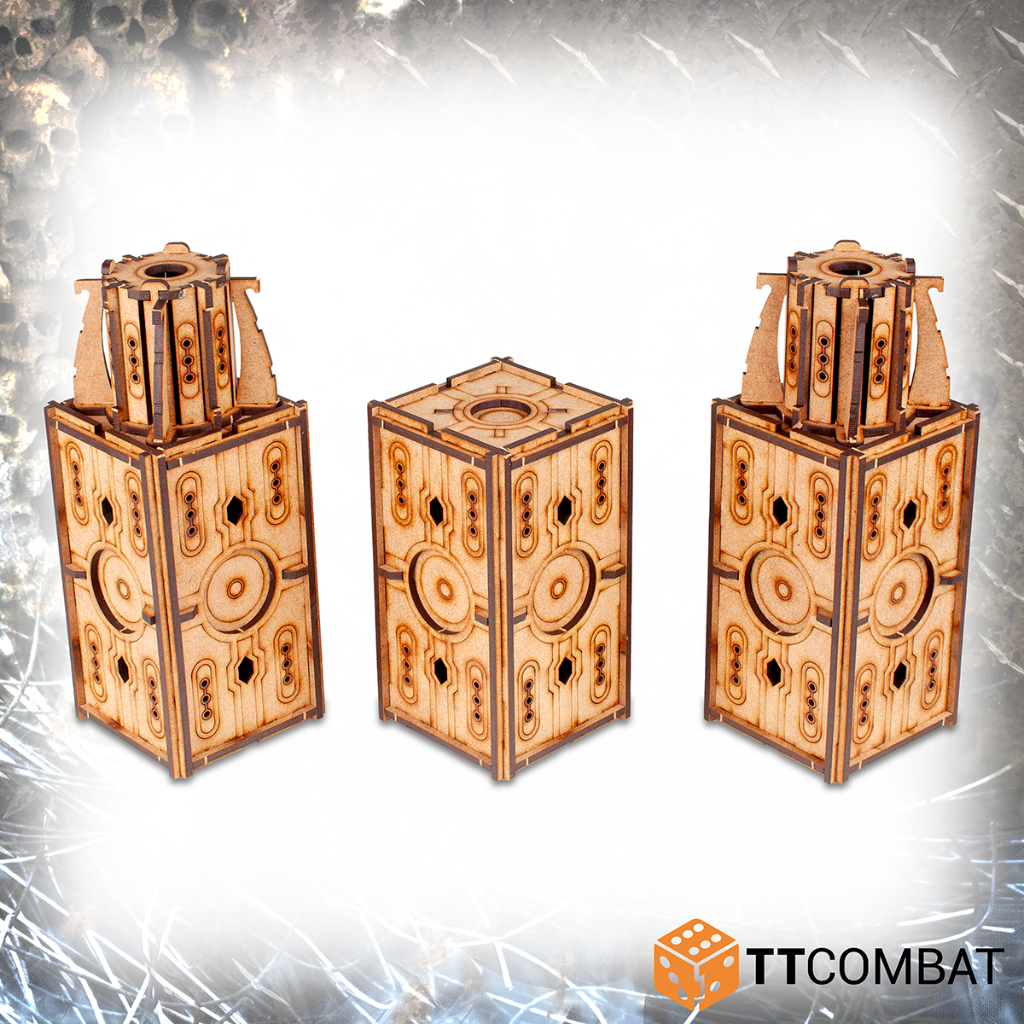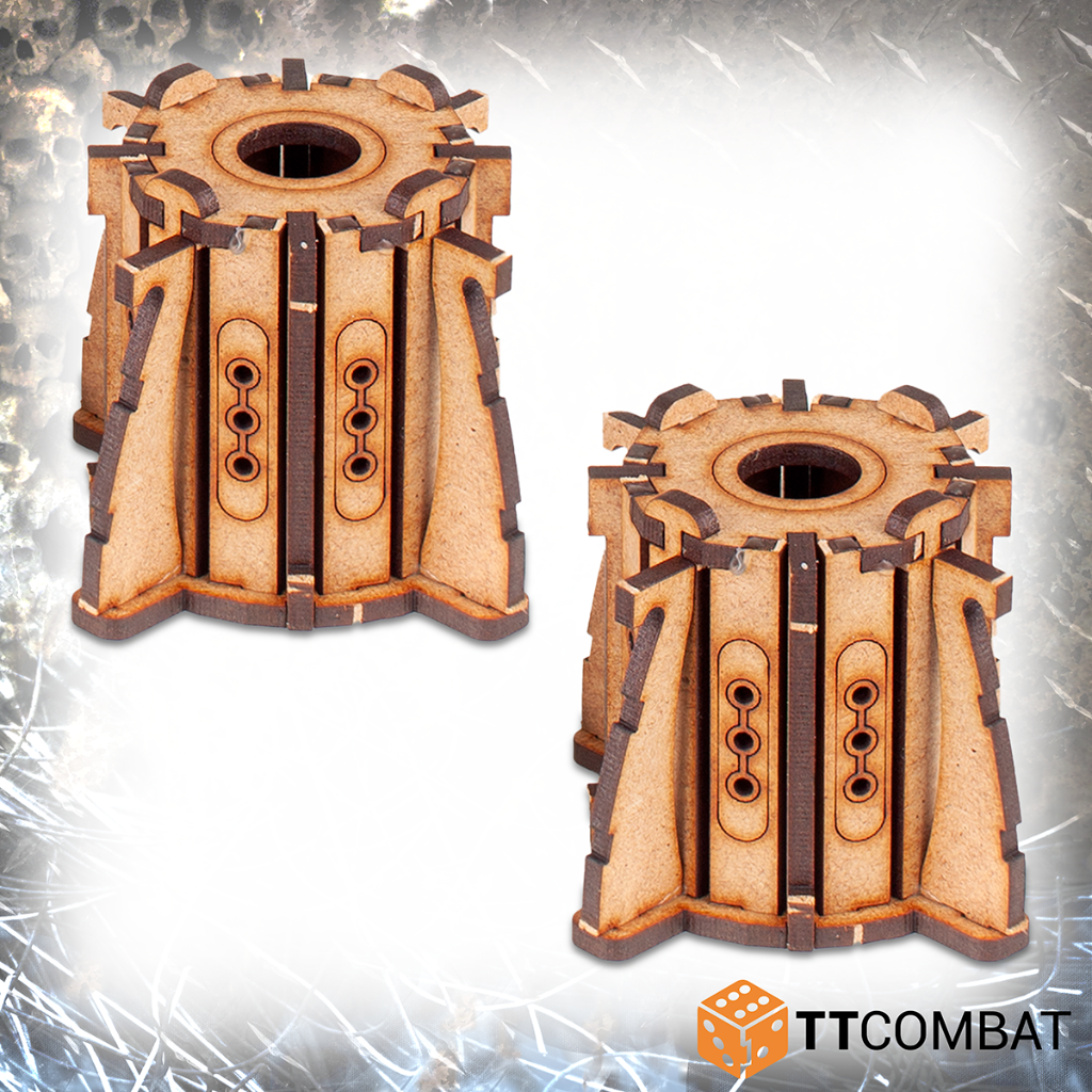 The Cyber Gauss Pillars are made from 3mm MDF. It is a great scenery kit to use in sci-fi skirmish games, and will work perfectly with 28-32mm games and miniatures.
