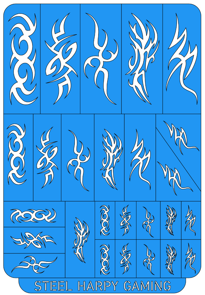 Removable Airbrush & Painting stencils created using high quality British made self-adhesive flexible vinyl. Designed to be used across a variety of mediums but primarily designed for use in tabletop wargaming model and terrain painting.