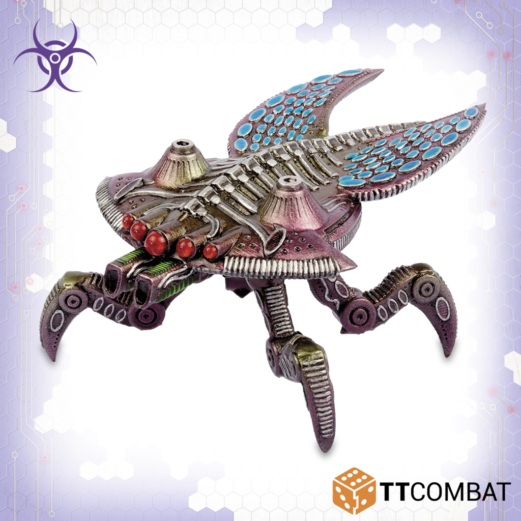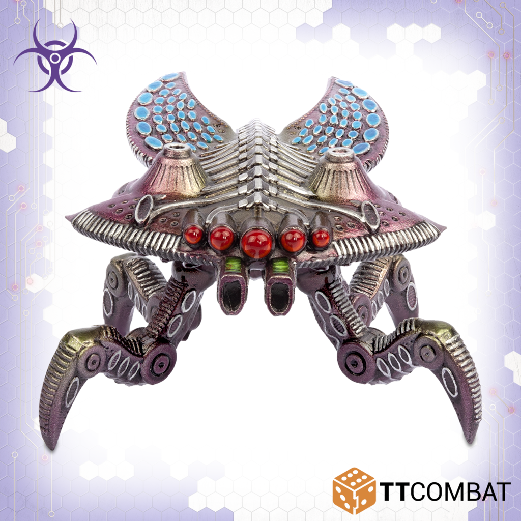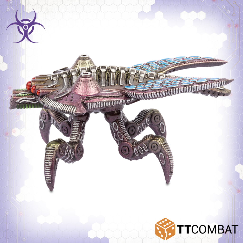 Armed with the typical Scourge Plasma Hoses, it’s already a fierce foe for armoured opponents, melting through steel as easy as through flesh. However, it’s the Micro Subjugation Field that puts human forces most at ill-ease, manipulating gravity in such a way as to impede all enemy ground forces in the immediate area.