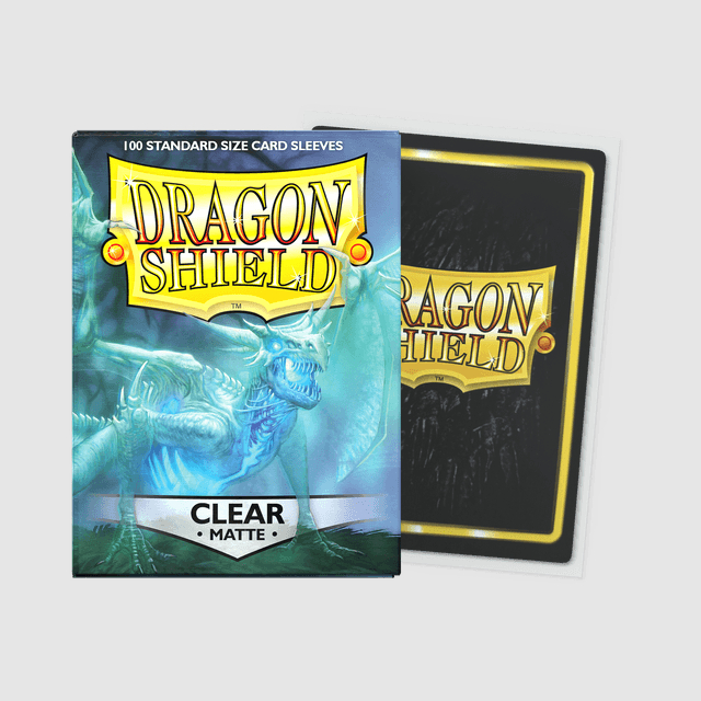 Clear. Insert card back here Matte sleeves are our popular line of textured Dragon Shield with superior handling. A perfect mix of durability and shuffle-ability. The professor’s #1 pick for card sleeves. The sturdy cardboard box fits 75+ single sleeved cards or 65+ double sleeved cards. Every box has a label at the top of the box for personalization.