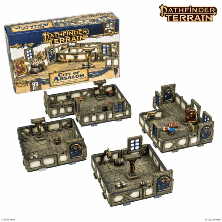 Dungeons & Lasers terrains are manufactured in a tabletop scale with 30 mm visible grids and 25mm half-height walls.