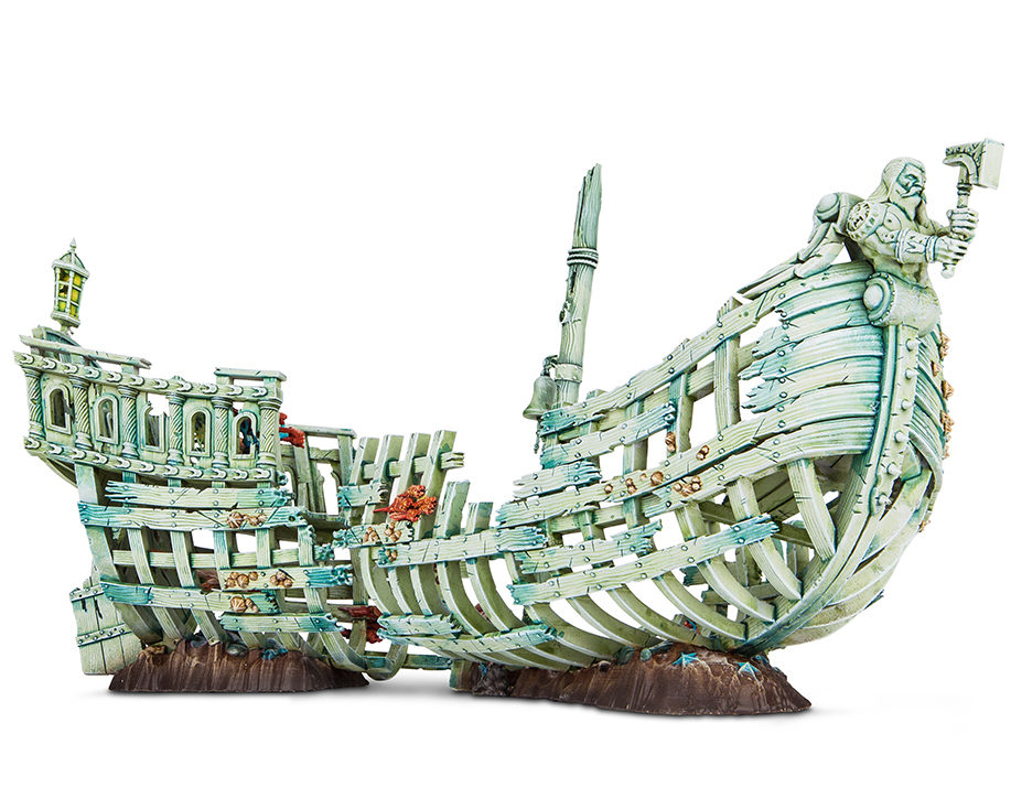 A ghostly, semi-corporeal wreck of a sea vessel manifests itself upon the battlefield. Covered in barnacles, surrounded by darting shoals of fish, it seems impossible for such a thing to be so far from the ocean… And yet when the Idoneth Deepkin go to war, the magic that surrounds them manifests as the Ethersea, changing the very fabric of nature around them.