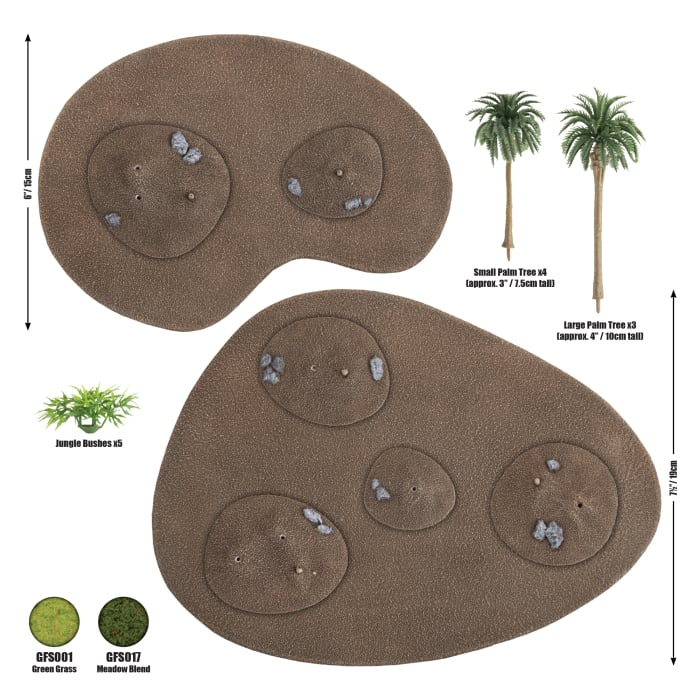The battles across the Pacific featured many varied and dense jungle landscapes where soldiers could leverage the harsh environment to catch foes unaware. Combine these Jungle Palms with other Battlefield in a Box jungle features to create the battlefields of the Pacific, ‘Nam’ or World War III: Team Yankee.