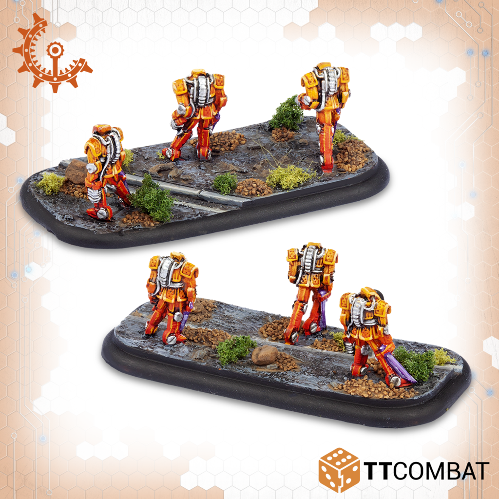 However, they can also take a beating. While there are only 3 to a base, Armour 9 and a 4+ Dodge means that most infantry will struggle to damage them in the first place, even before their saving throw. Their Warsuits also have inbuilt Active countermeasures meaning they can safely be out in the open against anti-infantry fire, and also allow them to re-roll Collateral Damage hits, meaning they’re going to survive a long time.