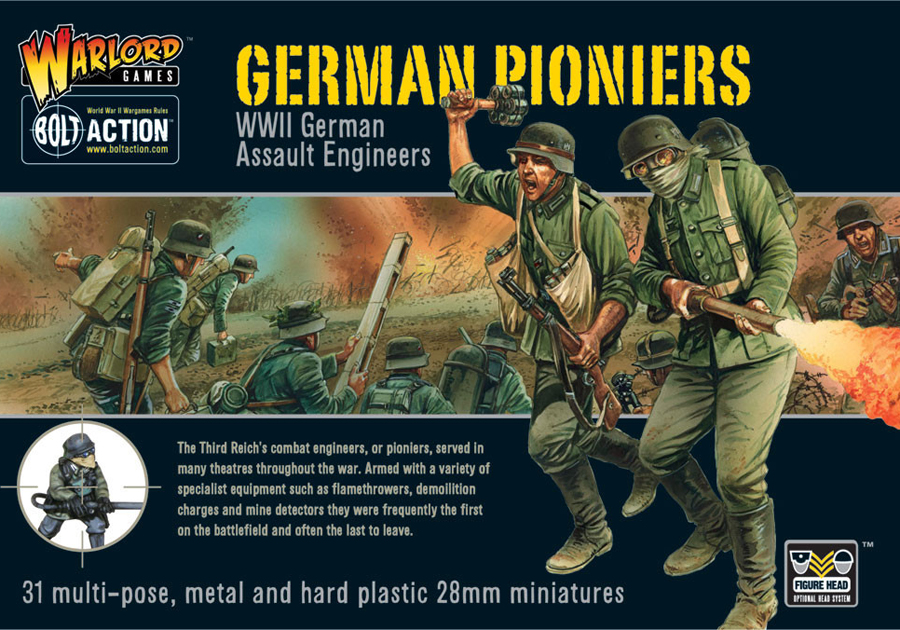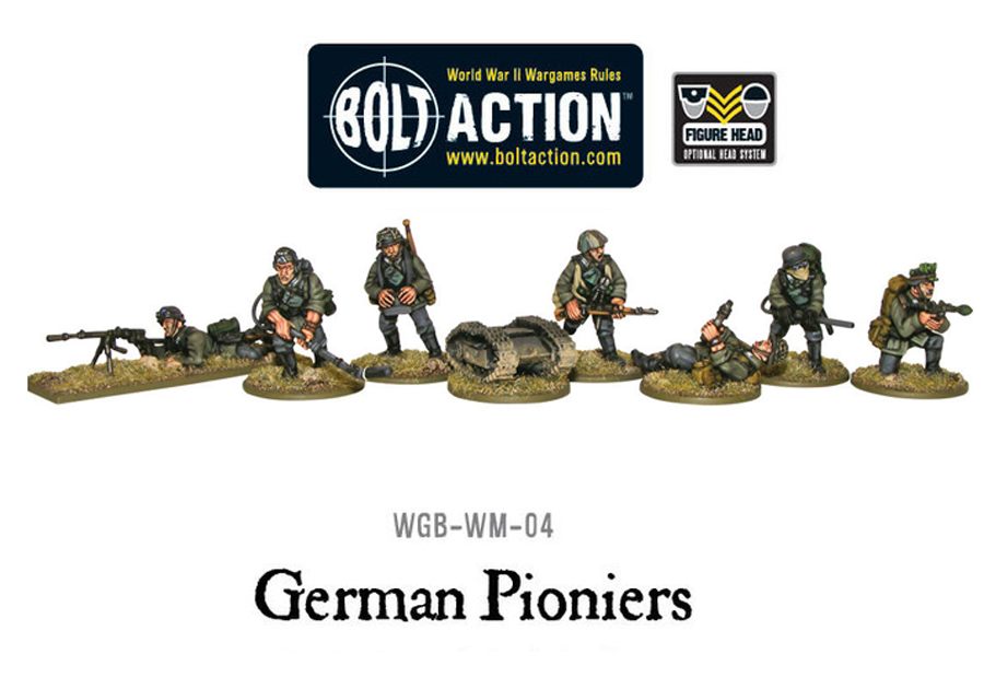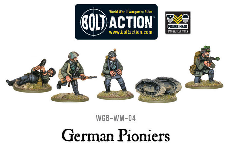 - Enough plastic and metal components to make 31 German Pionier miniatures. Includes a host of options to allow for different weapon configurations and command models.