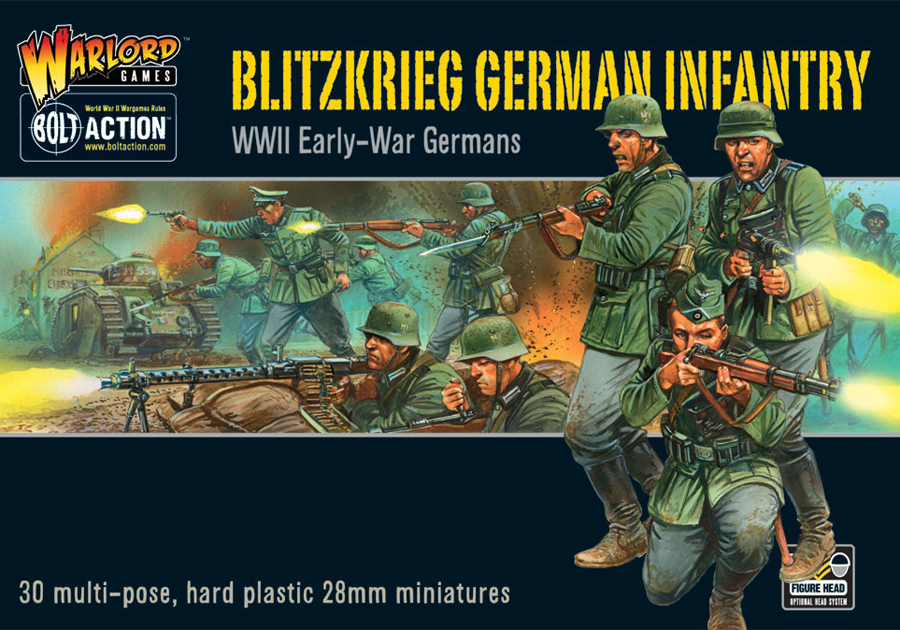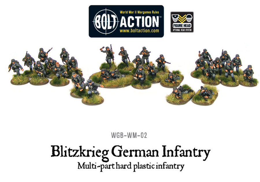 - Enough plastic components to make 30 German infantry miniatures – Including a host of options to allow for different weapon configurations and command models.