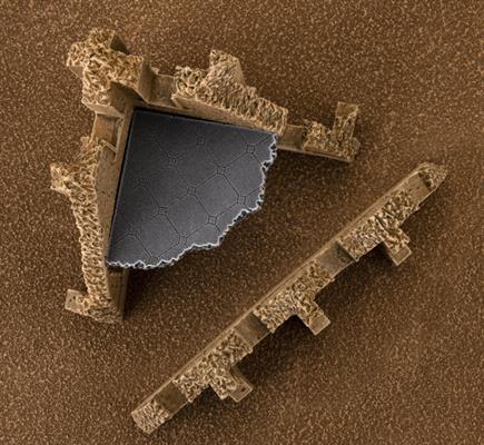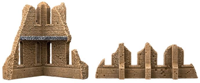 The Gothic Battlefields Corner Ruins Small reaches 6 inches above the battlefield. The stout structure is two stories tall, providing a strategic vantage point for any commander able to control it. Beyond the thick stone walls, a crumbling second floor allows your forces to seize the height advantage of this contested ruin. A 7½ inch long section of ruined wall marks the all that remains of this once mighty structure.
