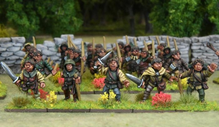 10 Halfling Soldiers armed with hand weapons.