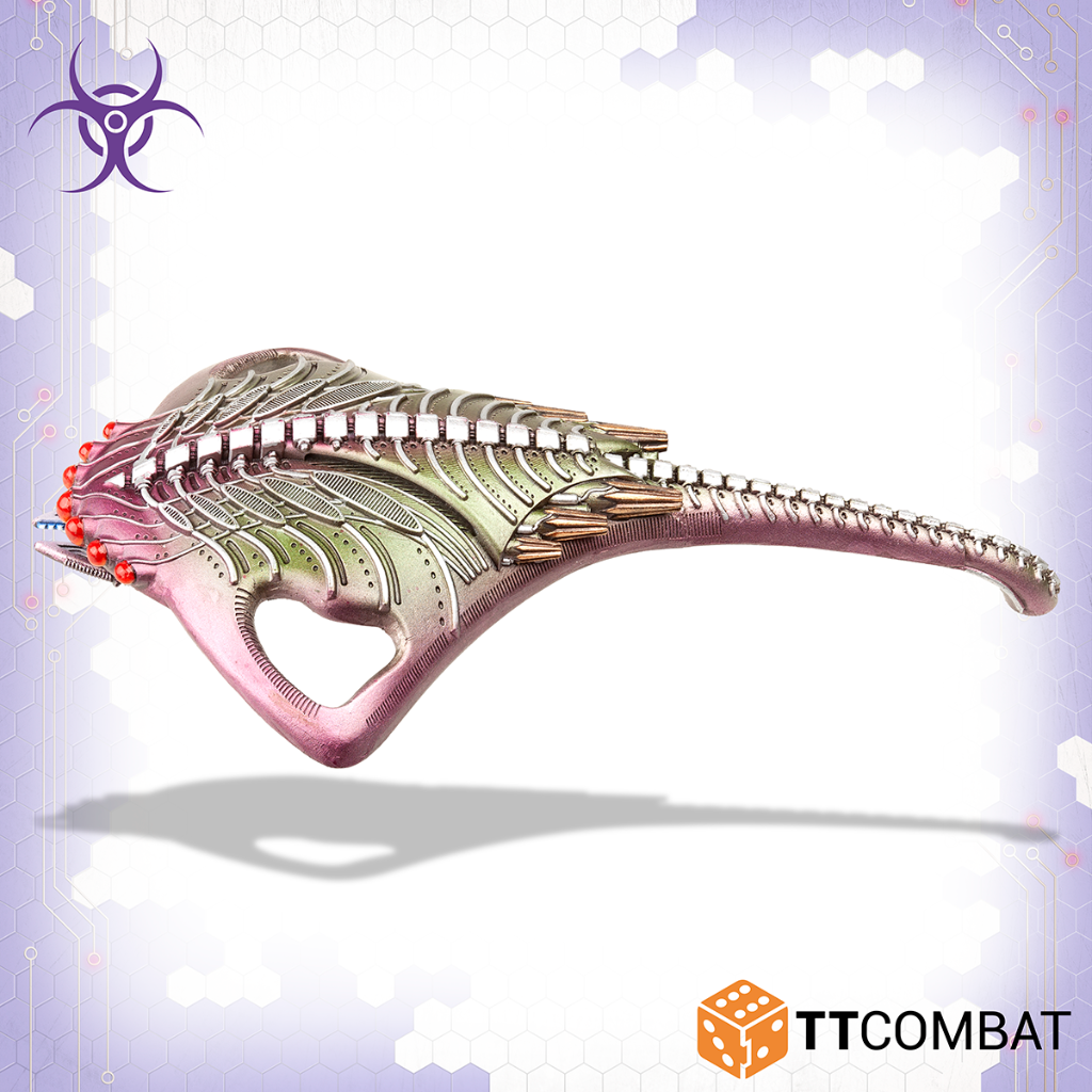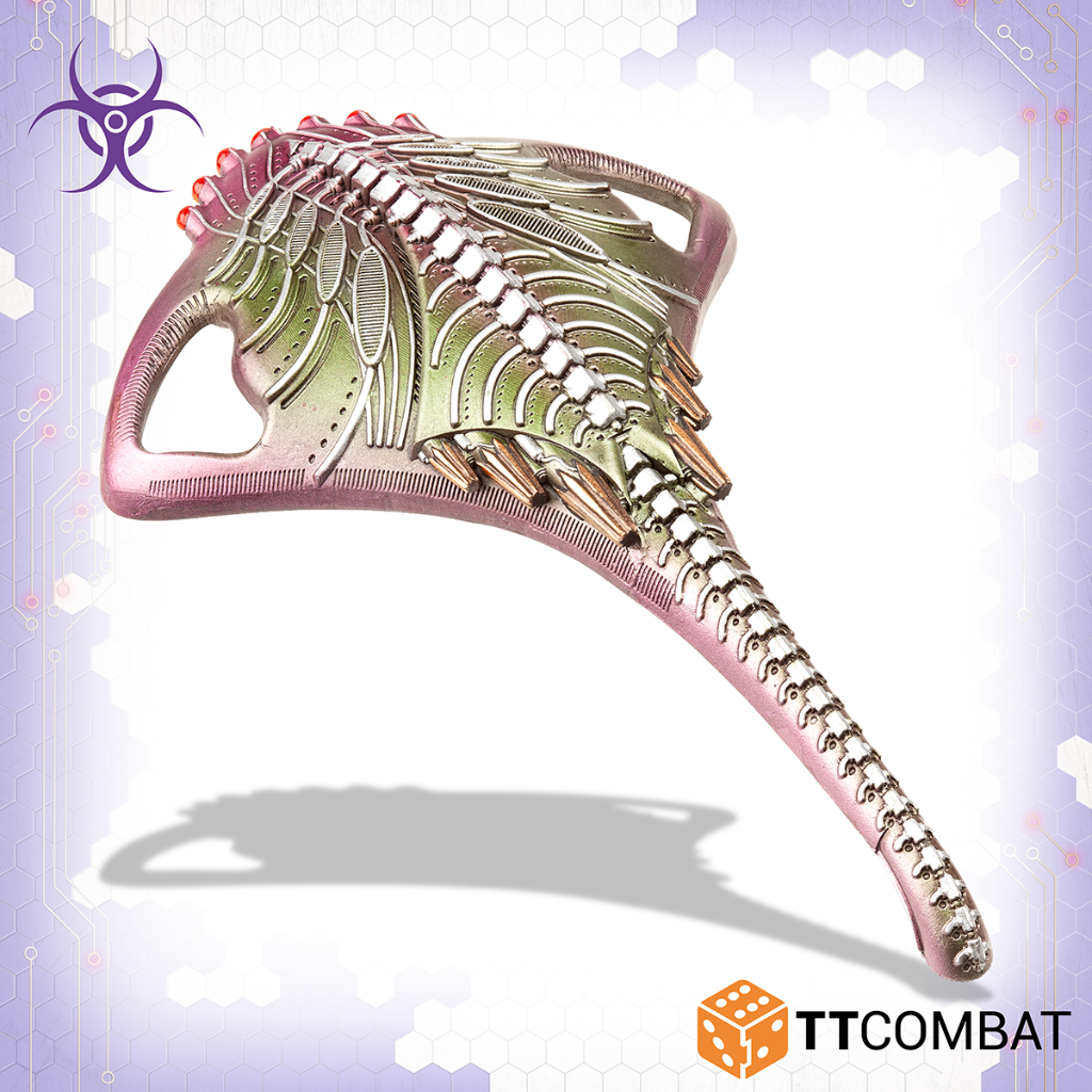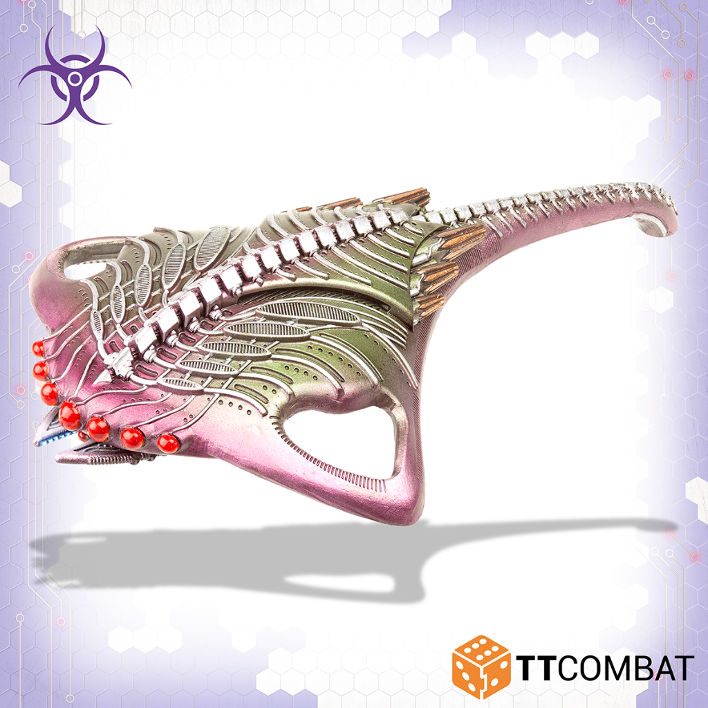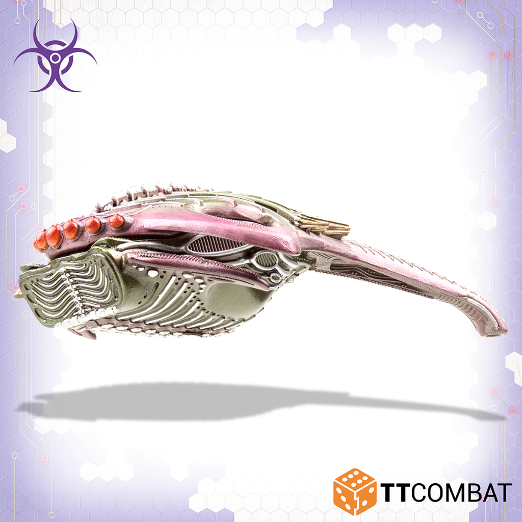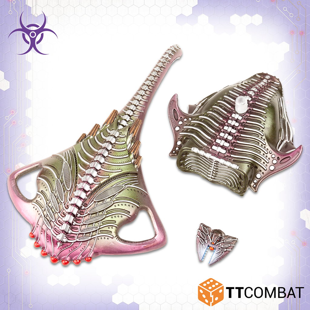 This kit builds either the Harbinger Troopship or the Harbinger Dropship. The Troopship is perfect for taking Screamers into battle, whilst the Dropship is ideal for taking both Arthropod and Beetles. In addition to this both can transport Vampires and both have access to the devasting but short range Plasma Bomb.