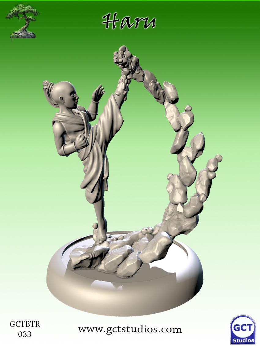 Both Ume and her twin brother Haru show great potential and are so highly regarded by their tutors that they are already spoken of as future Masters. Haru has an affinity for both earth and air, combining them to create an earthen barrier which gives melee protection and cover for his allies. Both however have a lot to learn and they are always prepared to practise other monks’ techniques.