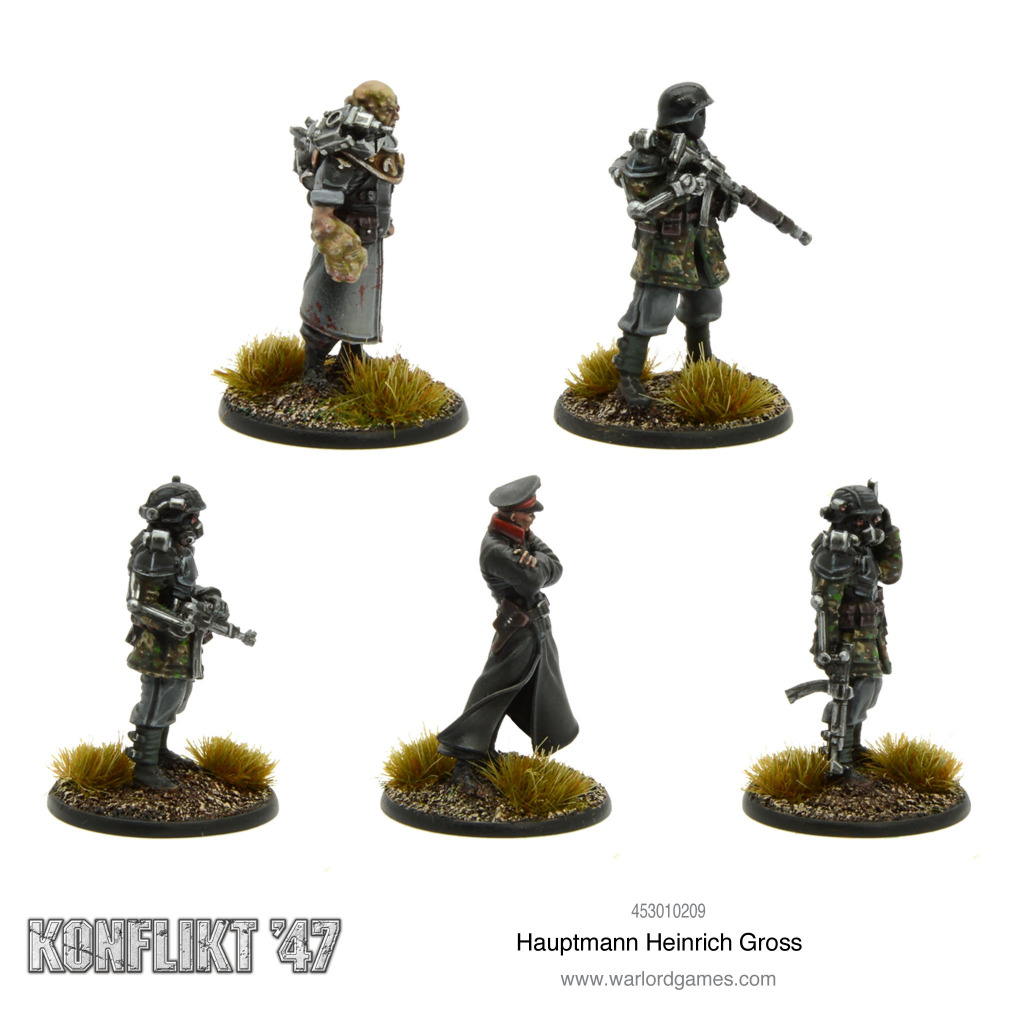 SS Hauptman Gross is a rising star in the SS Shocktrooper brigades, and as such has been able to assemble his own command group of specialists to enhance his company command and maximise his unit’s impact on the battlefield. Hauptmann Gross has been the subject of a number of experimental Rift-tech enhancements that remain shrouded in secrecy, but it is clear there is something more than human about him.