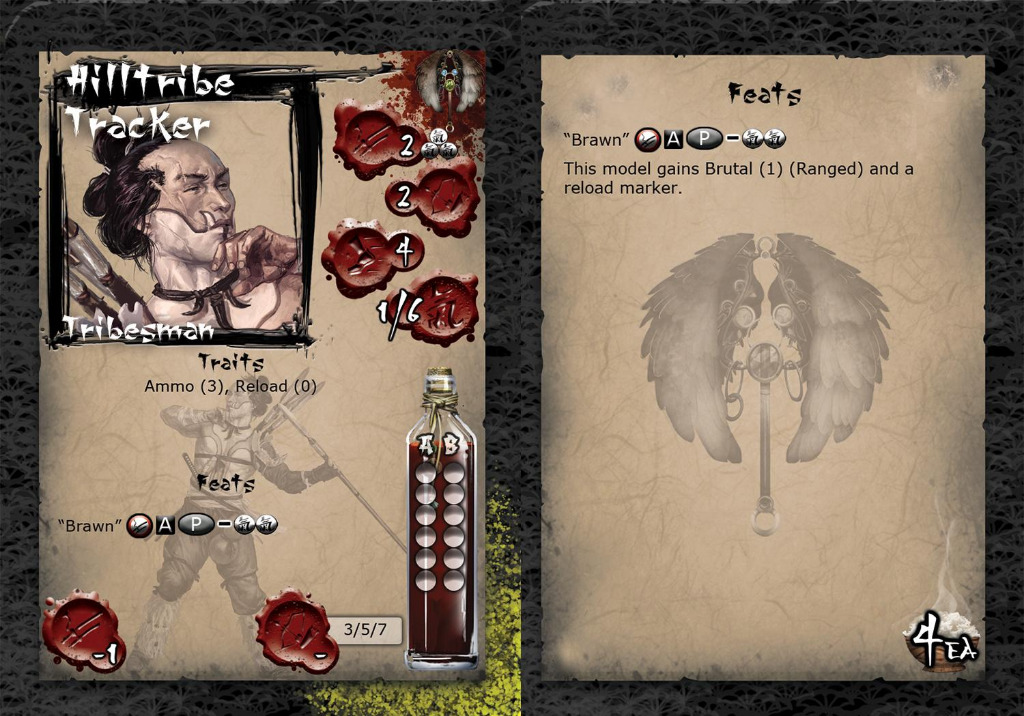 The Hilltribe Trackers go out into the wilderness to hunt, their prey is the snow yeti that also occupy the mountainous region the Tengu call home. They perform rituals before embarking and brave the elements without clothes on their upper torsos. The yeti are fearsome opponents and thus the trackers specialize in ranged attacks. Hoping to bring down the monsters with a well-placed javelin long before the brutes can bring their overwhelming strength to bear.