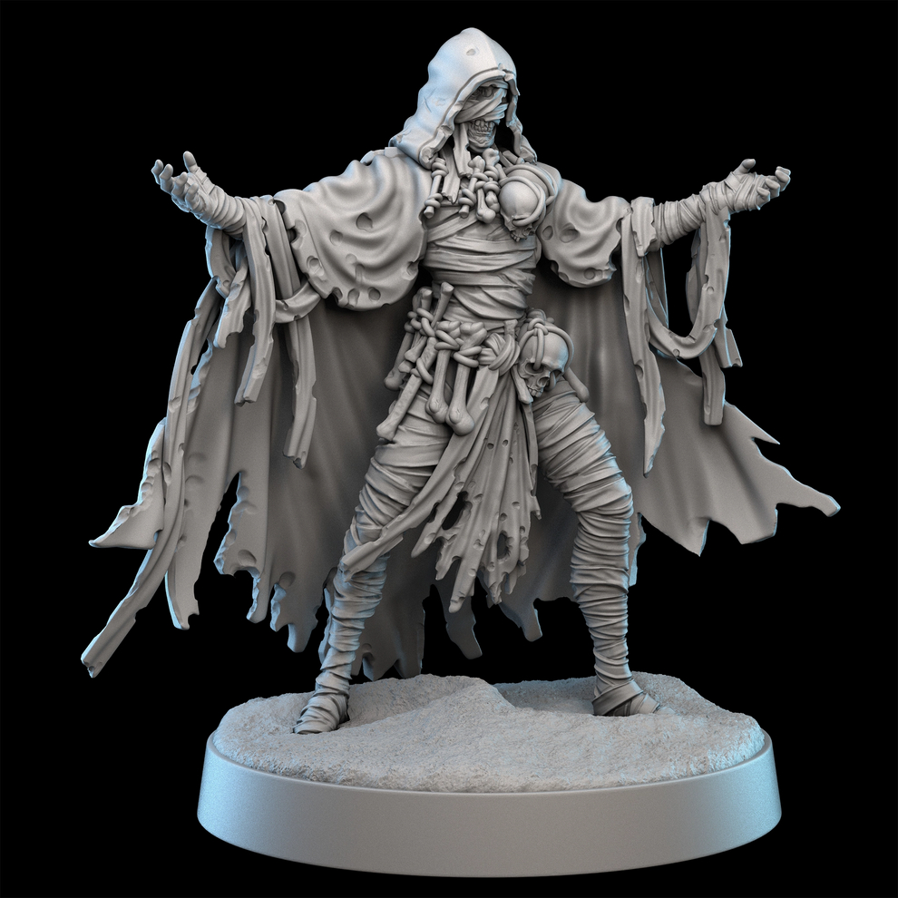 Ancient and embalmed in curses, Xanthus rises from his crypt to punish those who covet arcane power. Stalking the battlefield with unnatural purpose, he seeks out the strongest, most artifact-laden heroes and cuts them down with his devastating Withering Hand. Against well-equipped foes, he surges forward with surprising speed, empowered by their greed and his desire for arcane relics. His touch is ruinous—crippling limbs, shattering will, and sapping life with each swing.
