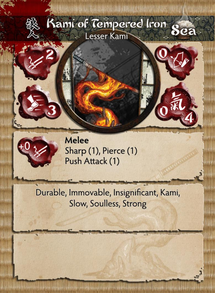 The temple has another supporting Kami, its ability to aid in melee is certainly useful for them, aiding in bypassing enemy defences, at which they have struggled. The Kami is also a good combatant in its own right, and with four Ki it can engage a few times before being removed.