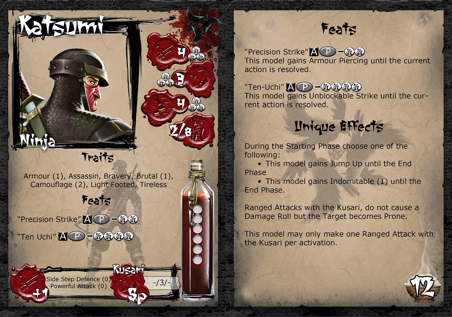 Regarded by many within the clan as the most fearsome shadow crow in battle. Katsumi is a weapons master, with a relish for utilizing any at his disposal to spill the blood of those that oppose the Kage Kaze Zoku. He became an adept at an incredibly young age, his squad formed with little of the meticulousness of others. His fellow worms intimidated into joining him and in truth they weren’t ready. Katsumi led them in an open and frontal attack on an adept, of some experience, his bloody assault lasting mere moments as the members of his squad looked on. They didn’t last long as adepts, their weaknesses obvious to the worms that remained. Katsumi however was never the subject of an attack by a worm squad, his fearsome reputation well-earned and unquestioned.