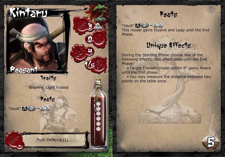 As trouble and unrest sweeps across the Jwar Isles the unlikeliest of heroes are emerging to support the Temple of Ro-Kan. Kintaru is one such man, a peasant more at home fishing the rivers and lakes of the mountains than fighting. Nether the less he has given the strength of his arms and his keen eye to protect that which he holds dear.