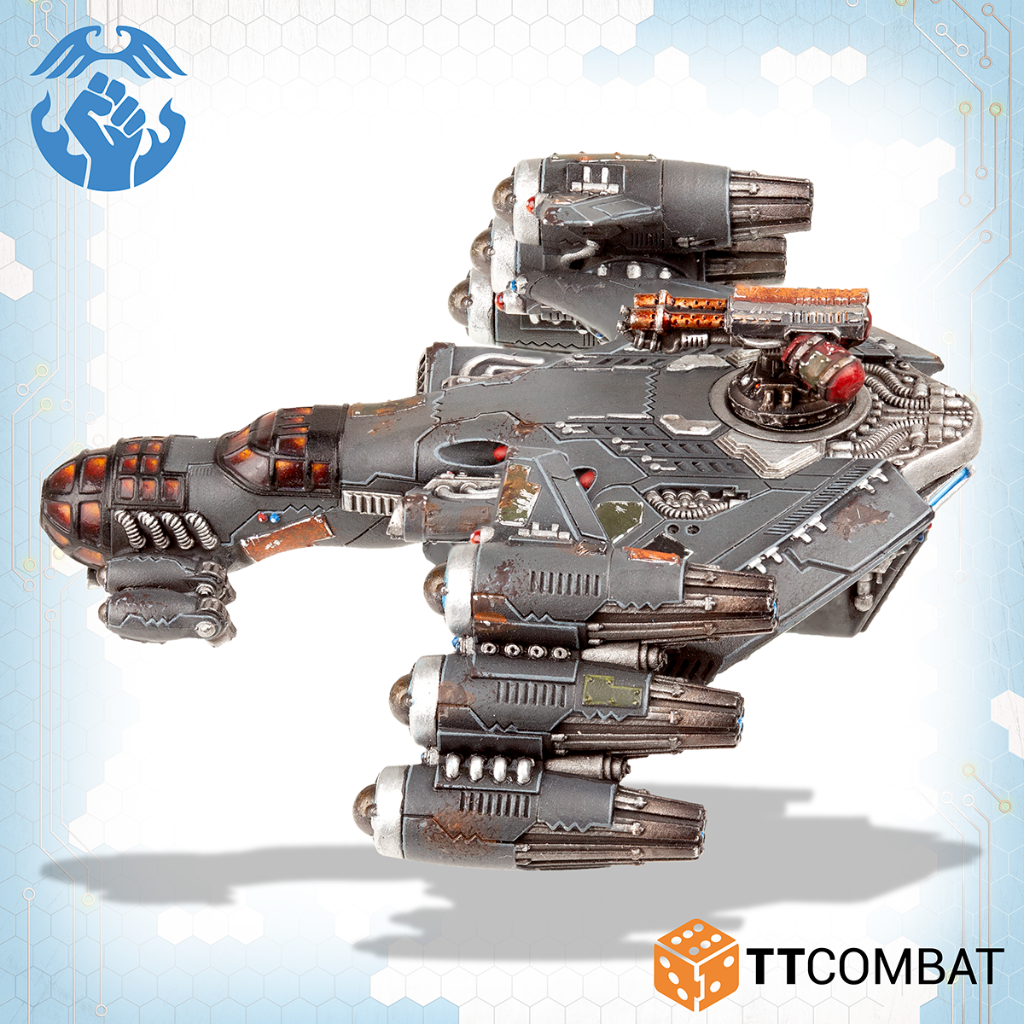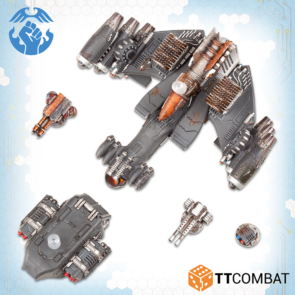 Contains 1 multi-part resin miniature with parts to make either a Lifthawk Dropship, Lifthawk Troopship or the Barrel Bomber.