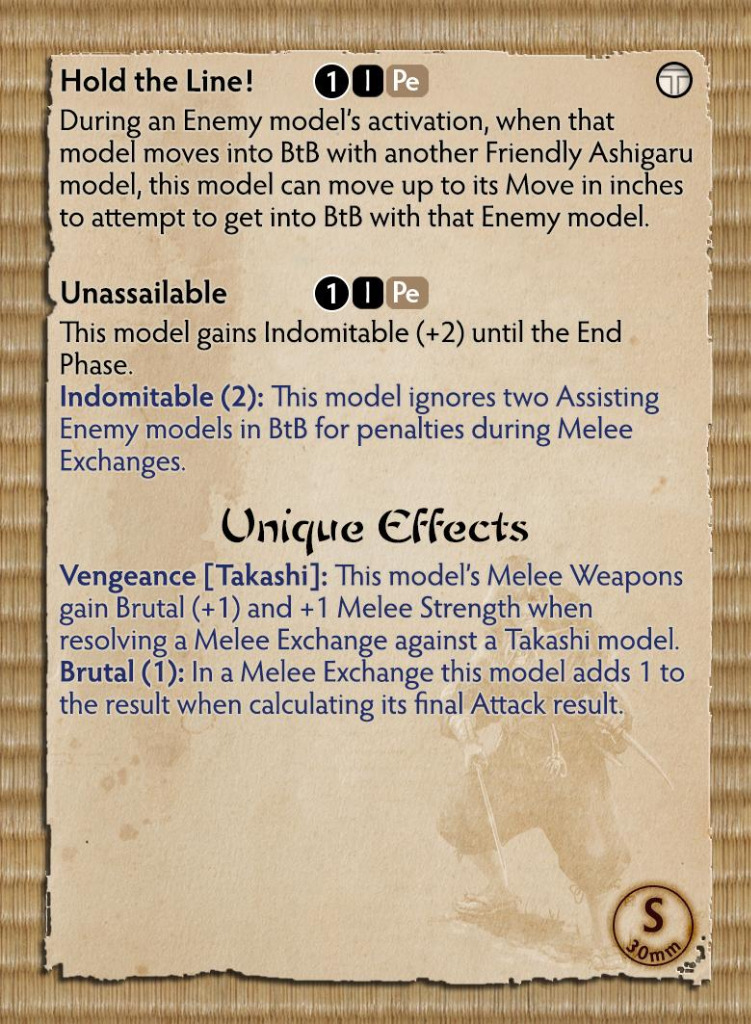 Maki offers the same unpredictability as her fellow Ashigaru with her Hold the Line! Ki Feat. Her Unassailable Ki Feat allows her to remain on a flank fending off multiple opponents then using her Sidestep to free herself from being locked down.