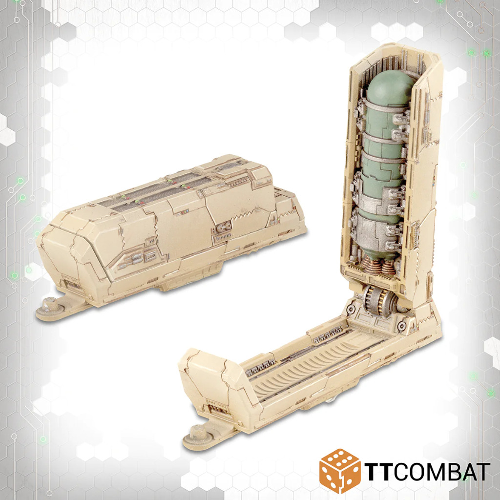 Thundering along the line, the Military Monorail makes for an excellent centrepeice that runs all the way across the board. With a battery of AA guns, giant Slayer Railgun, and a hidden launch bay packing a heavy payload that can be used to devestating effect. With dynamic posing due to a flexible track and columns, you’ll be able to assemble this kit around your terrain.