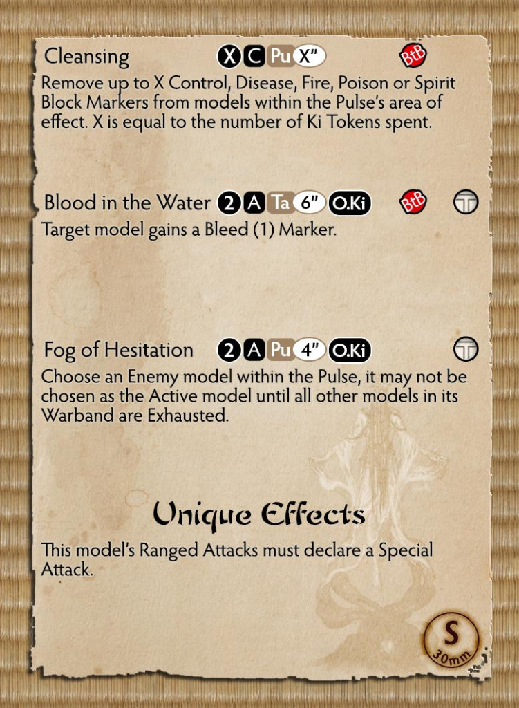 Miyakomo’s ability to move enemy models like the tides is very useful and combined with Fog of Hesitation, she is a powerful control piece; able to dictate where and when the Jung engage their enemies.