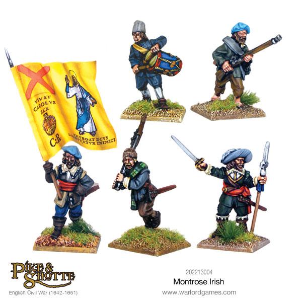 Montrose Irish contains 4 metal pike, 4 metal command and 16 metal musket as well as a full-colour leaflet with full colour flags.