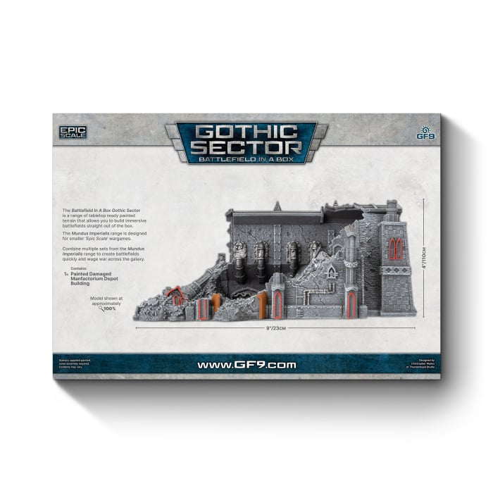 • Contains 1x pre-painted Damaged Manufactorium Depot Building
