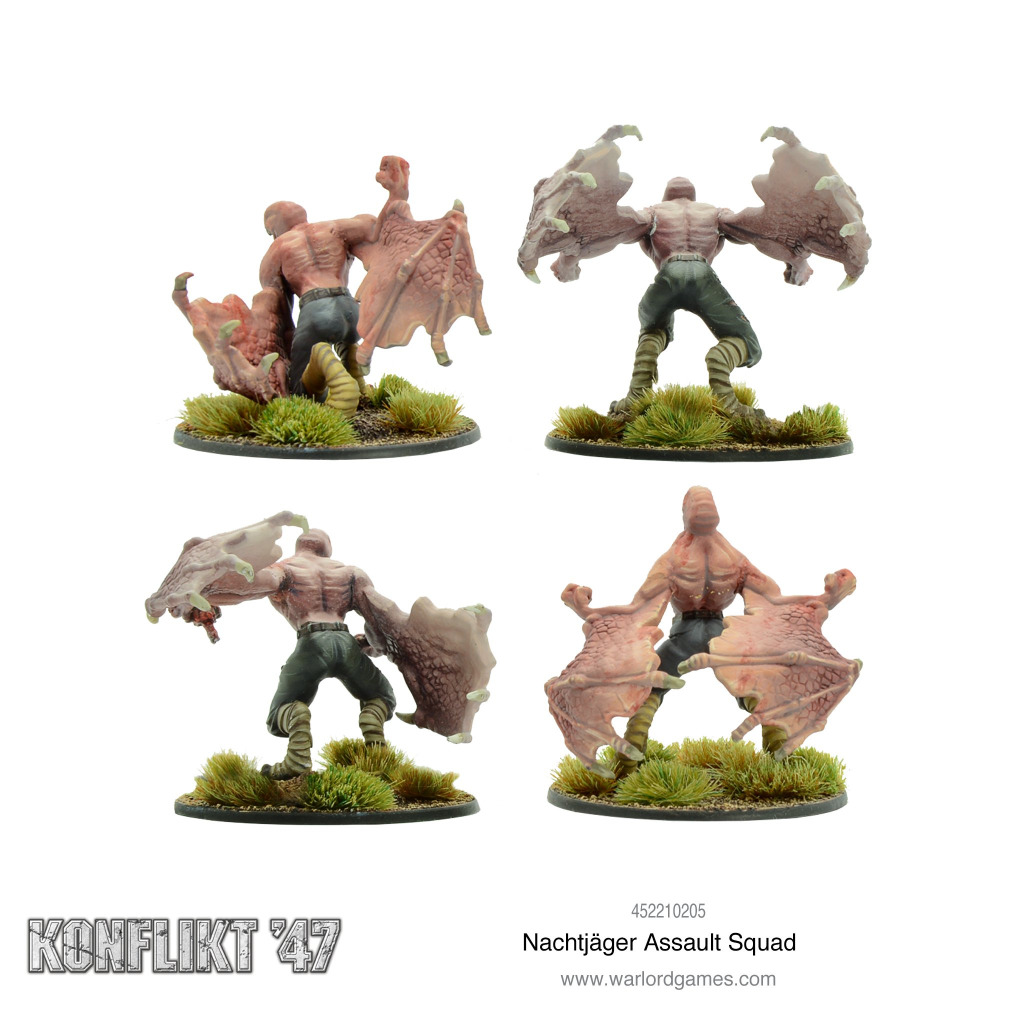 Currently the pinnacle of the soldier enhancement division, the Nachtjager is no longer truly human, with the DNA of reptiles, bats, and alligators merged into a horrific creation. No one knows if the subjects for this programme are volunteers, but their effect on the battlefield is without question. The very existence of Nachtjager alters Allied planning and reports of their presence are always taken seriously by intelligence staffs. The Nachtjager are unleashed wherever the fighting is fiercest, inflicting devastation upon the enemy and crushing morale in one fell, bloody swoop.