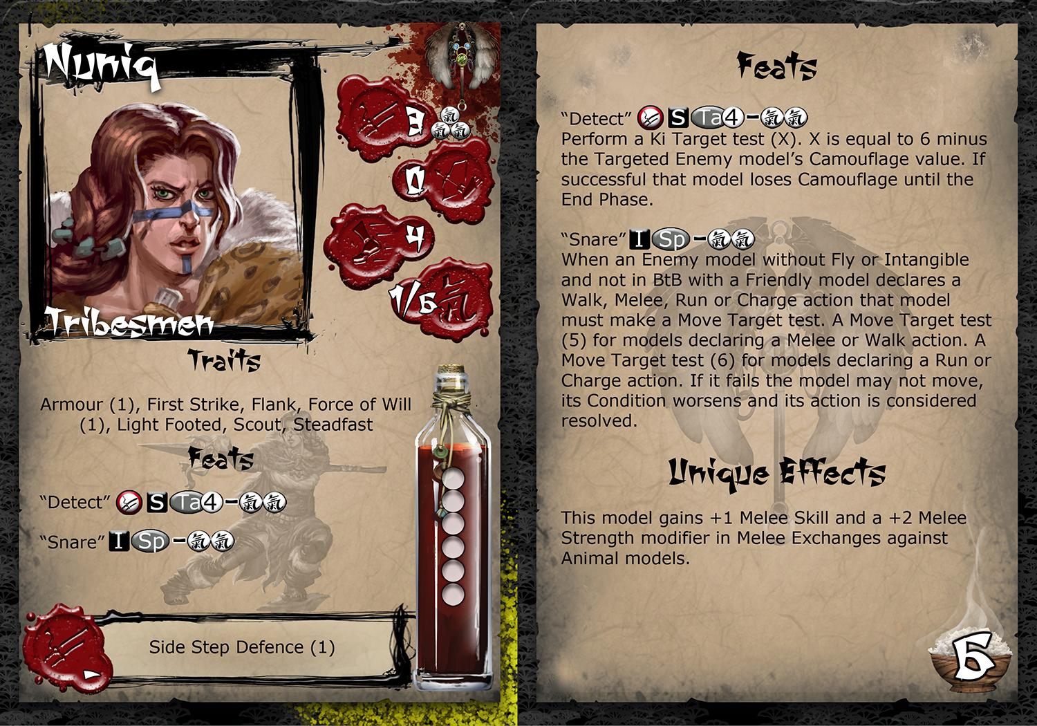 An amazing hunter and tracker, Nuniq knows the mountains she calls home better than any other. Enemies to the tribes must tread carefully if they don’t want to lose men to the hidden traps and snares, obvious to the tribes people but undetectable to outsiders. Her eyes miss nothing, whether spotting prey, animal or human.
