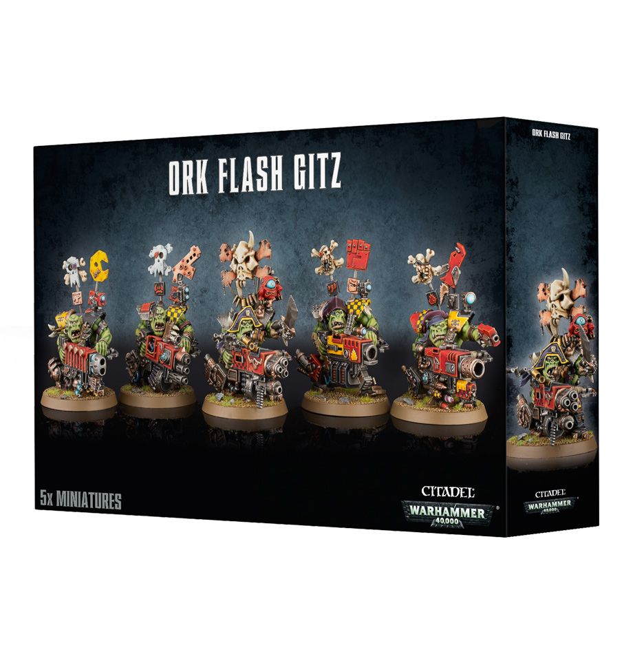 This multi-part plastic kit makes five Flash Gitz armed to the teef with flashy snazzgun’s. Channel your inner Mek by assembling these kustomised weapons with the engine, gun body, magazine and under slung secondary dakka of your choice.