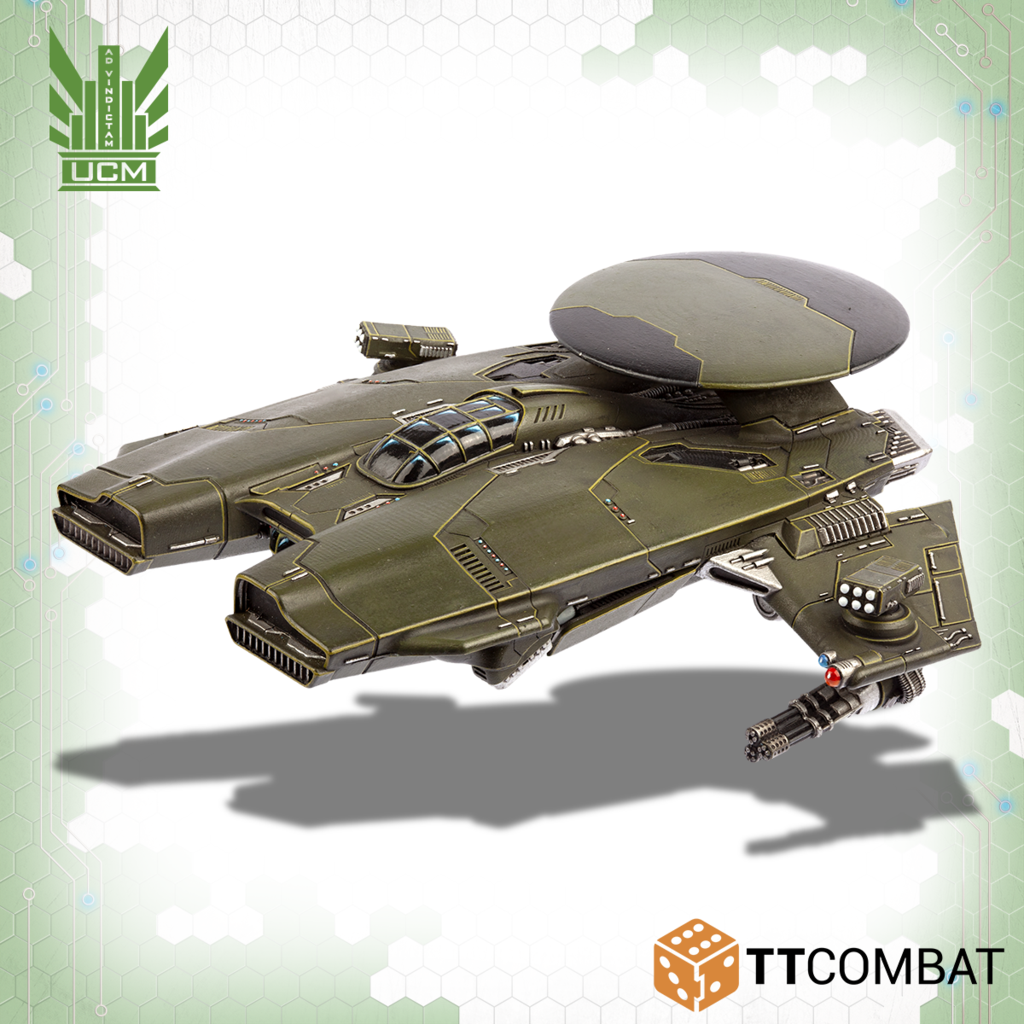 The Phoenix features multiple redundant systems as well as limited self repair systems. These give it the edge it needs in its role as a vanguard command aircraft, as securing beachheads is an incredibly dangerous task. Despite a sizeable portion of its bulk being dedicated to survival, the Phoenix packs a vast array of devastating weaponry. Its full armament consists of six UM-86 ‘Punisher’ missiles, two triple-barrelled heavy chain cannons, and one pair or Point Defence Launchers.