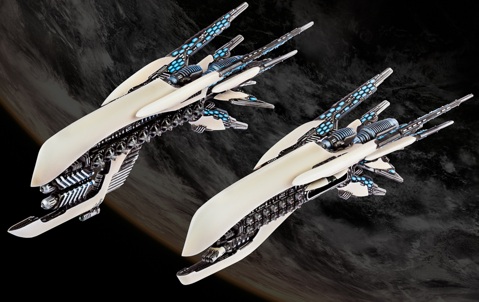 2 x PHR Cruisers: These multi-part hard plastic lavishly detailed 1:9150 (0.2mm) scale miniatures can be assembled as up to ten different classes, including cruisers, heavy cruisers, fleet carriers, light cruisers and assault troopships.