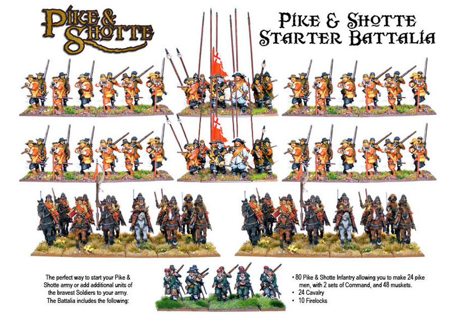 · 80 Pike & Shotte Infantry allowing you to make 24 pike men 48 muskets with 2 sets of Command.