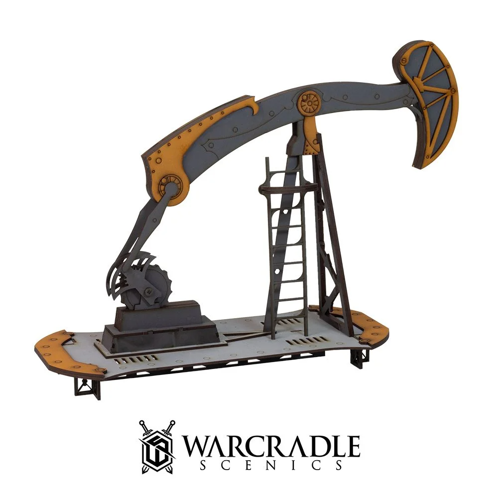 Derricks are dotted about everywhere in Promethean Complexes. Used for moving heavy loads where it might be required and a construct wouldn’t be practical, they are also converted to pump jacks on occasion. These ubiquitous sights with their hypnotic, repetitive movements are symbolic of the barely human constructs that seem to act the same, all for the benefit of the Covenant of the Enlightened and their goal of global control.