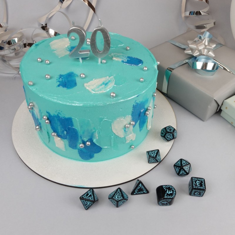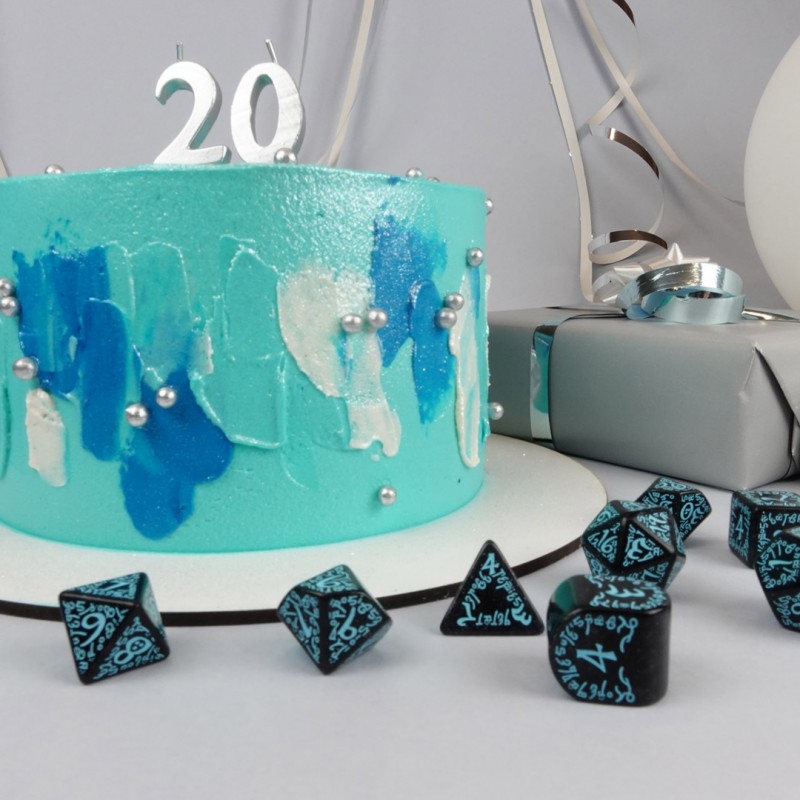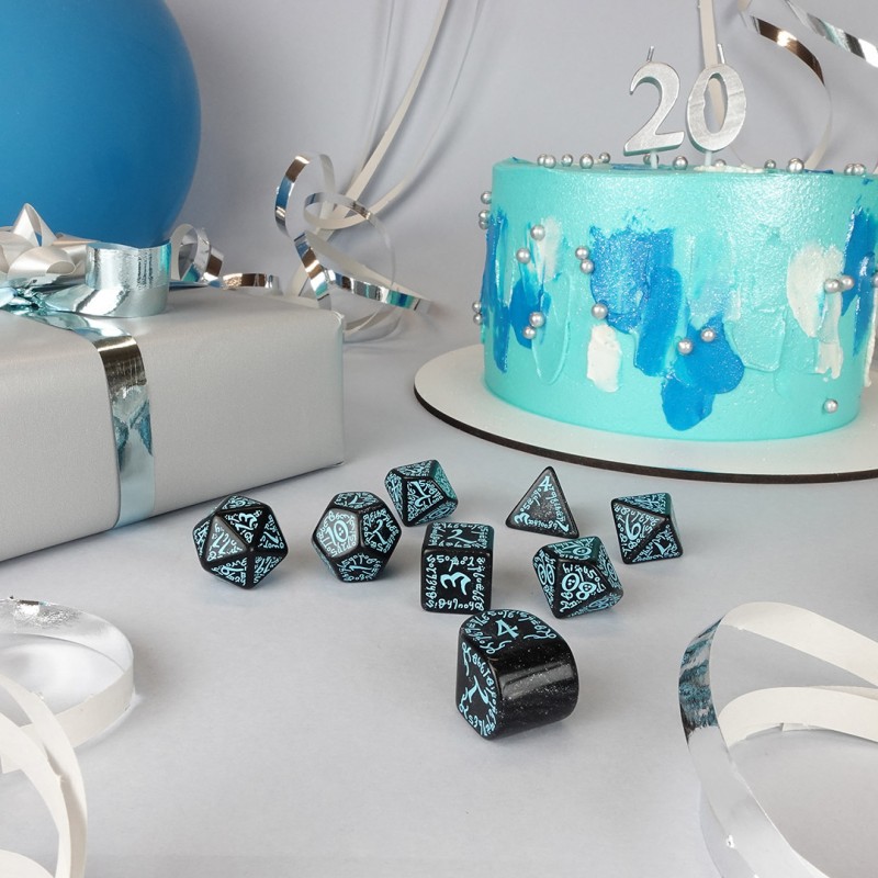 20 years of Dice — The set includes 7 items: D4, D6, D8, D10, D12, D20, and D100.
