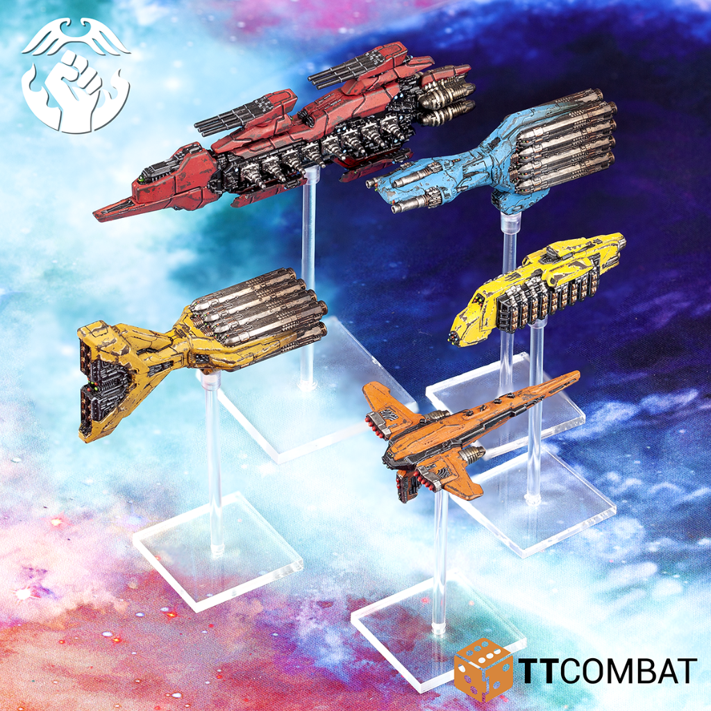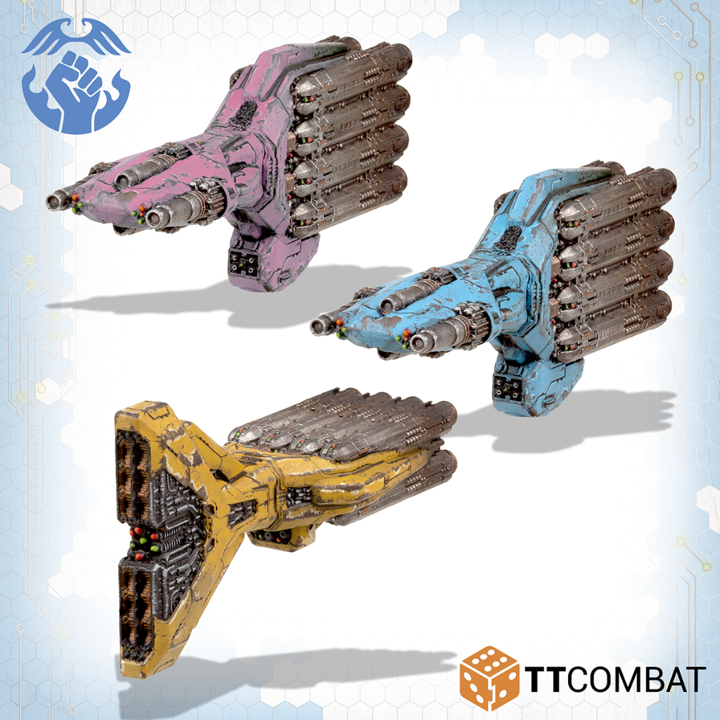 Contains 3 resin miniatures and plastic Dropfleet Commander bases and flight stands.