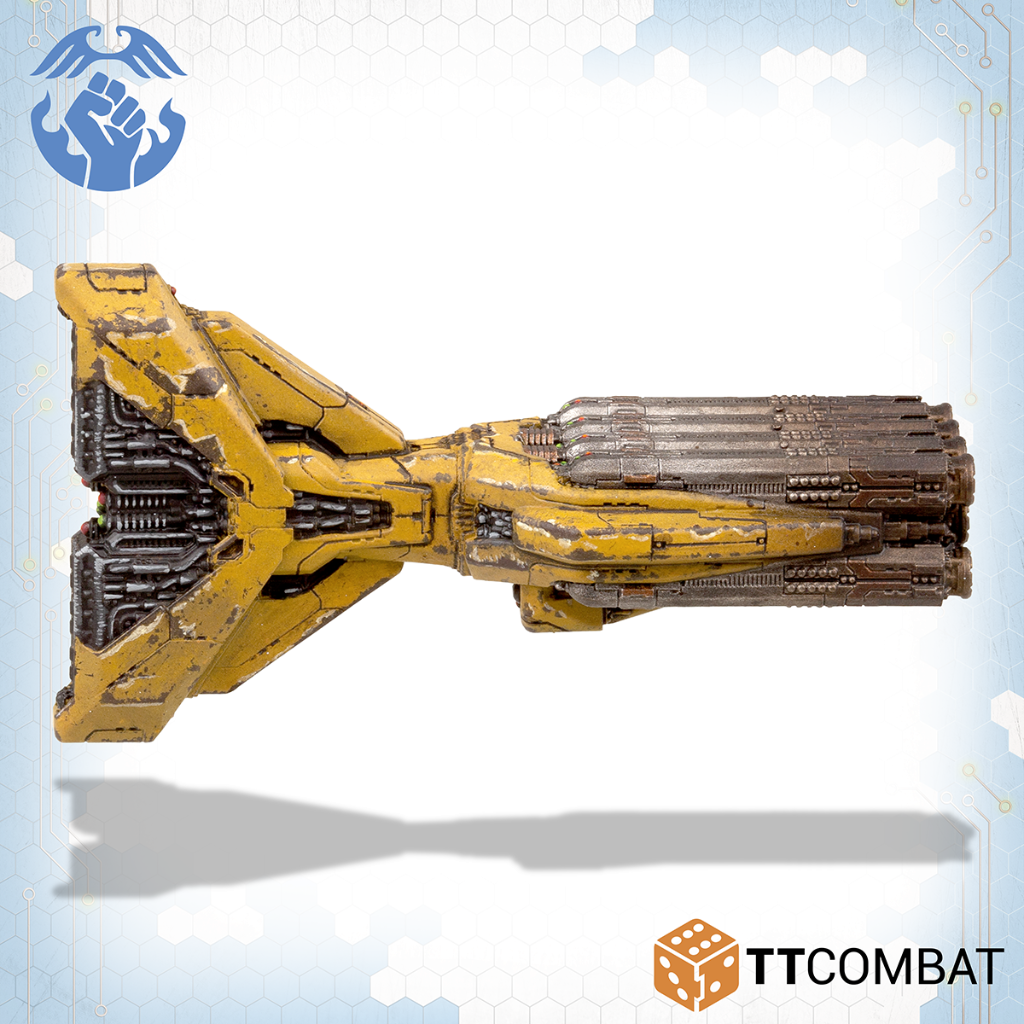Resin miniatures supplied unpainted and unassembled. This kit will require cleaning and assembly, and could need some small holes filled. Other ships and gaming mats are for scale purposes only.