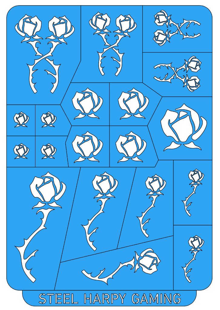 Removable Airbrush & Painting stencils created using high quality British made self-adhesive flexible vinyl. Designed to be used across a variety of mediums but primarily designed for use in tabletop wargaming model and terrain painting.