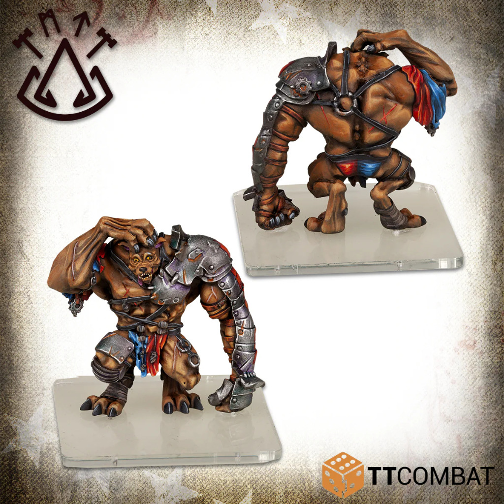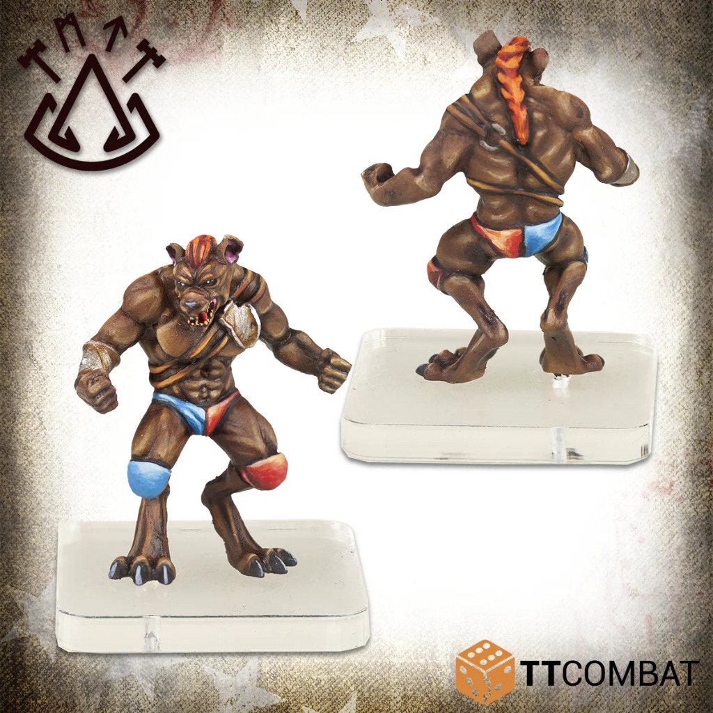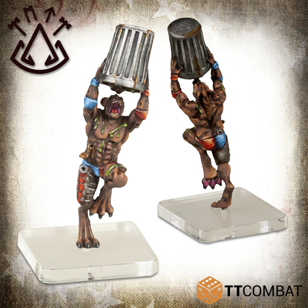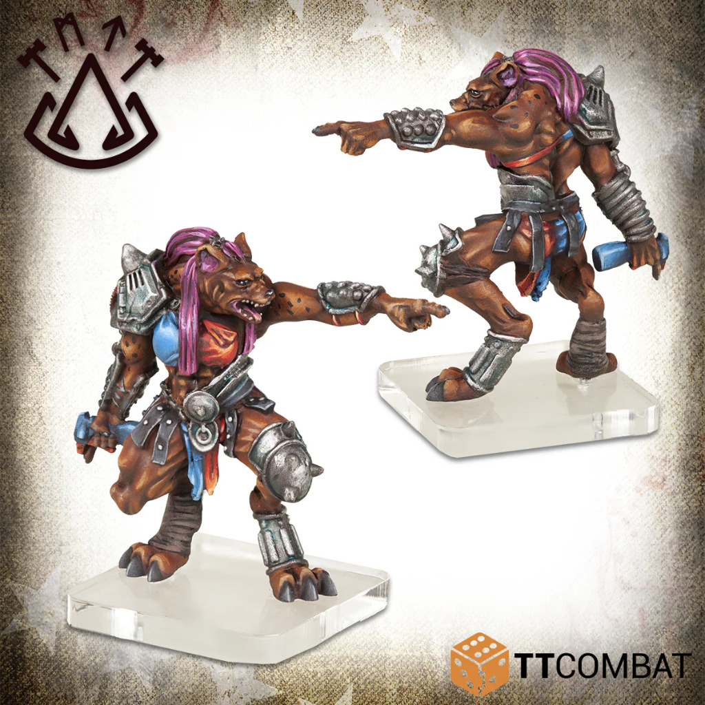 Who are we kidding, all trash is treasure to a gnoll! The Slumdog Scrappers are a gaggle of grimy fighters ready to bring a horde of slavering maws straight into the ring. A trio of underdogs are the lowest on the rungs; the Grimy, Scraggly, and Whelpish Gnolls have a lot to prove, fortunately, they’re ready to pile into the fight. Keeping them in line is a taskmaster, ready with her spray bottle as the ultimate deterrent. A foamy-mouthed Berserker rushes in swinging wildly, while a Gnogre takes life slowly, one punch at a time.