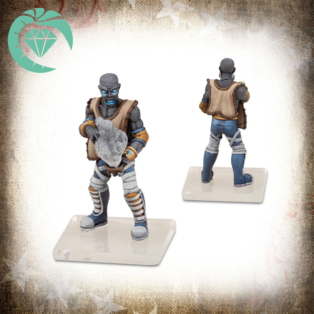 Contains 6 resin miniatures with 6 clear acrylic bases, and 6 character cards. Acrylic bases will have coloured film on that needs removing before assembly.