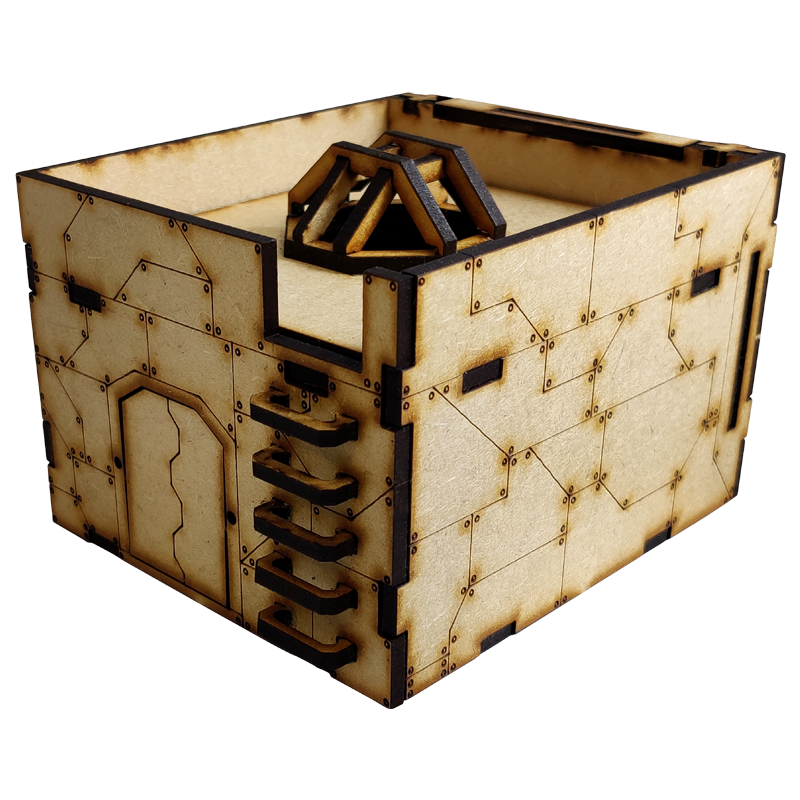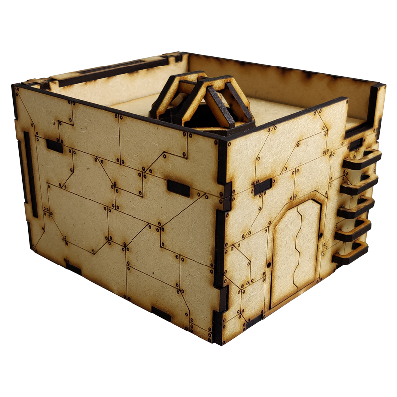 The main door contains slides open if left unglued. The roof is completely removable for access during gaming and modelling.