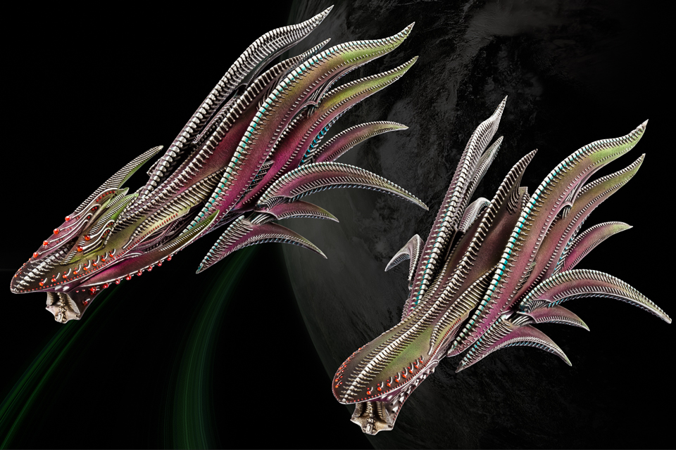NOTE: All ships are provided with a multi-part Dropfleet flight stand, designed to track in-game status without the use of tokens.