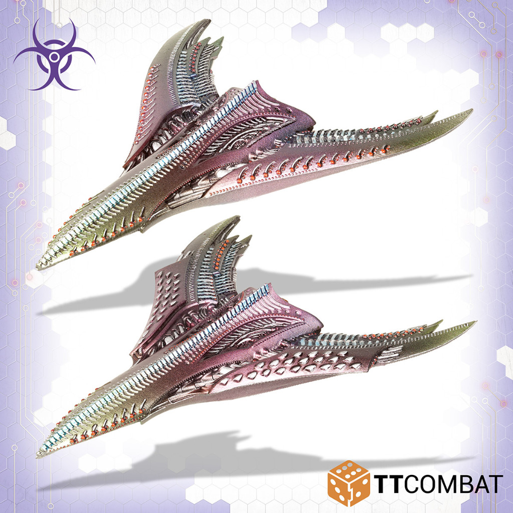 Contains 2 resin miniatures and plastic Dropfleet Commander bases and flight stands.