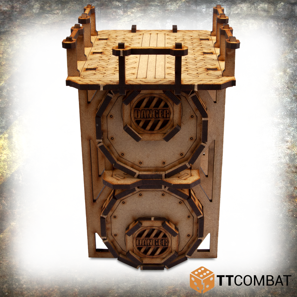 The Industrial Storage Tanks kit is made from 3mm MDF, easy to put together and looks great on the tabletop. Great scenery to use with modern 28-35mm wargames.